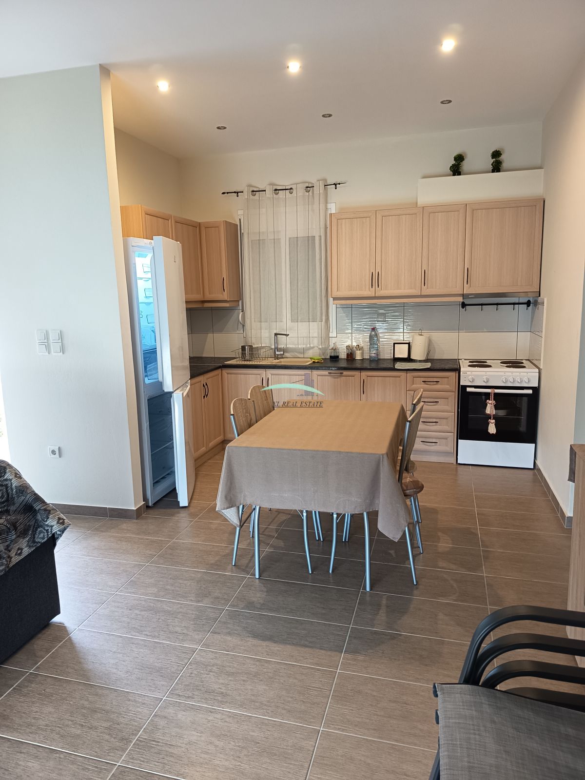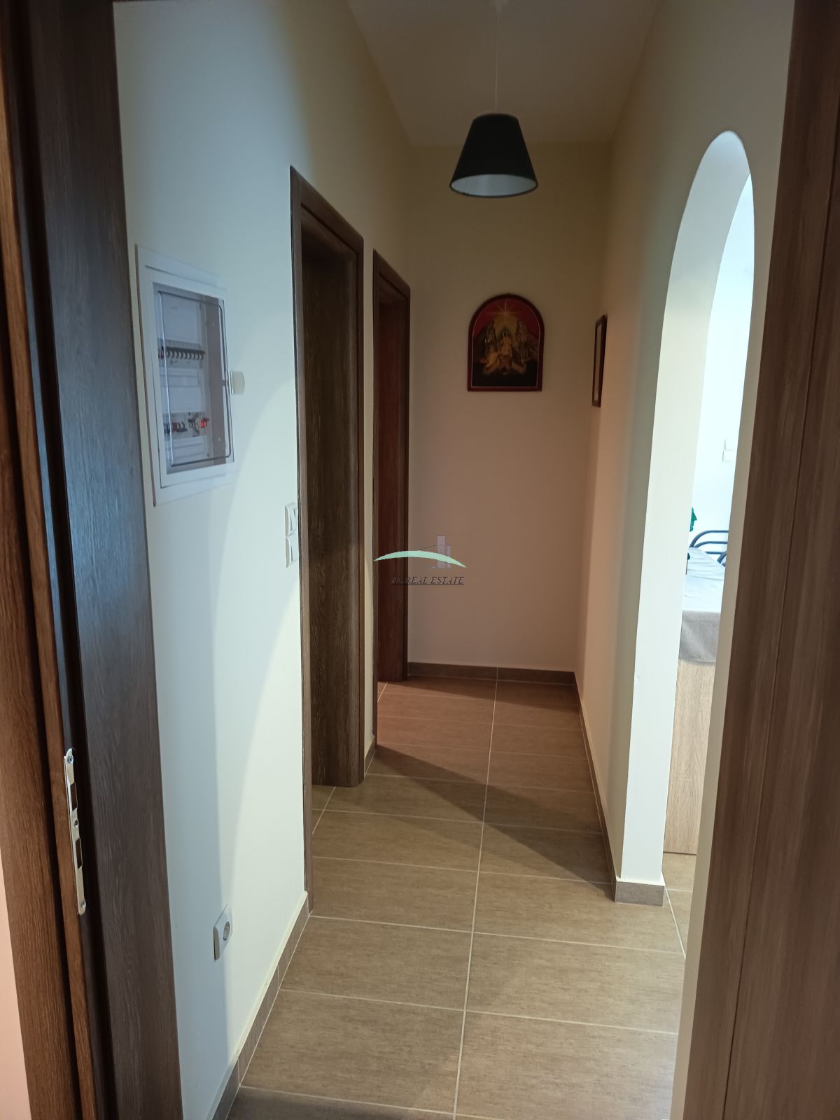 Διαθέτει κουφώματα αλουμινίου με διπλά τζάμια και είναι εξοπλισμένα με σίτες. Τα δάπεδα είναι από πλακάκια. Στα θετικά στοιχεία του αξίζει να επισημανθεί η μερική επίπλωση.