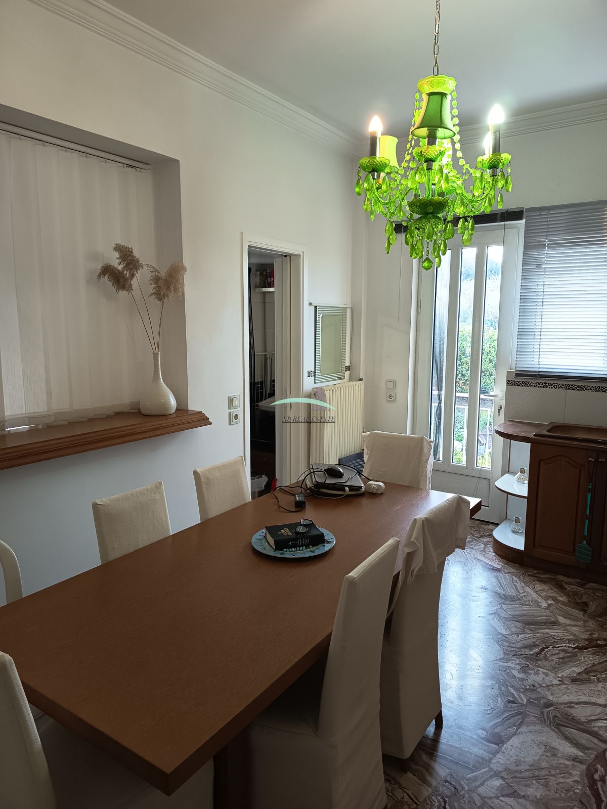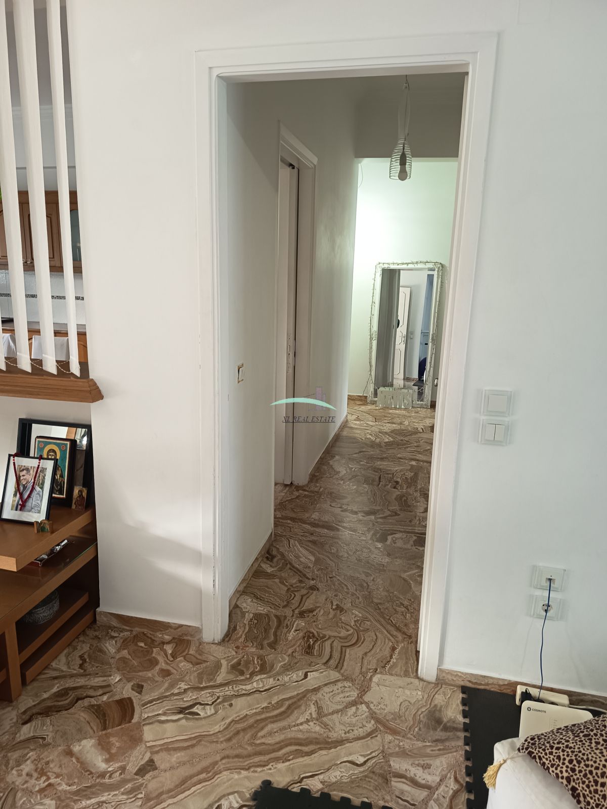 Διαθέτει κουφώματα αλουμινίου με διπλά τζάμια και είναι εξοπλισμένα με σίτες. Στα μπαλκόνια του υπάρχουν και τέντες. Τα δάπεδα είναι από μάρμαρο και πλακάκια. Στα θετικά στοιχεία του αξίζει να επισημανθεί η μερική επίπλωση.